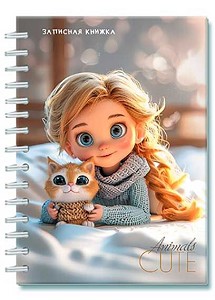 Записная книжка А6 100л. АППЛИКА спираль "Девочка с котёнком" С0592-127 тв.обл.