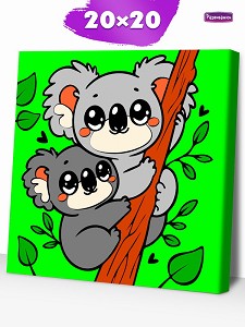 264279 - Раскраска на холсте (20х20см) Коалы на ветке Р3383 (Развивашки)