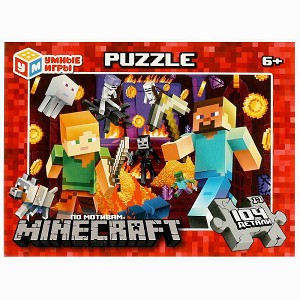 Классические пазлы в коробке «По мотивам Майнкрафт» ТМ «Умные игры» - отличная развивающая игра для детей: - 104 детали - размер готовой картинки: 237 х 330 мм - яркие цвета - все элементы хорошо и плотно соединяются друг с другом