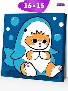 Каталог > Раскраска на холсте (15х15см) Котёнок-акулёнок Р3370 (Развивашки)