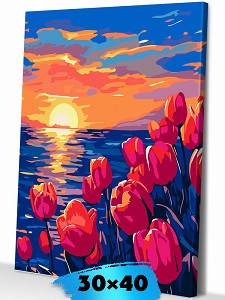 266963 - Раскраска на холсте (30х40см) Тюльпаны на закате Р3846 (Развивашки)