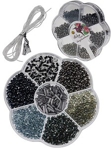 267764 - Набор д/бисероплетения (8х8см, 7 видов бисера, в боксе) черный (арт. БИС-8382)