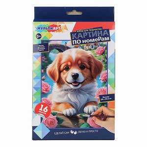 Набор для творчества – картина по номерам «Собачка в розах» ТМ «Мульти Арт» – отличный подарок для юного художника.