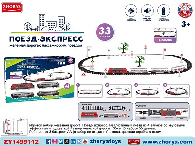 270499 - Железная дорога ZYA-A3301 4вагона, звук,свет, 33дет в/к