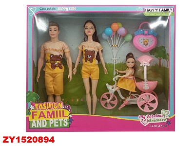 Набор кукол (Семья) FD886B1 папа+мама+малышка на вело в/к