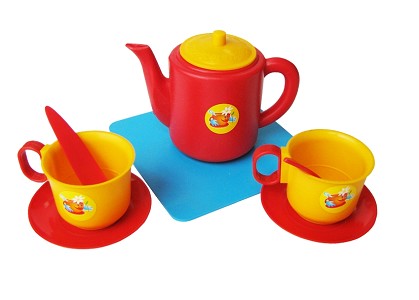 Любая девочка обязательно обрадуется набору посуды для ее куколок. Набор состоит из 8 предметов. В него входят 2 чашечки, 2 ложки, 2 блюдца, чайник и подставка для горячего. Вся посуда сделана из яркого, а самое главное, безопасного материала. С помощью набора ваша доченька сможет устраивать прием гостей и чаепития.