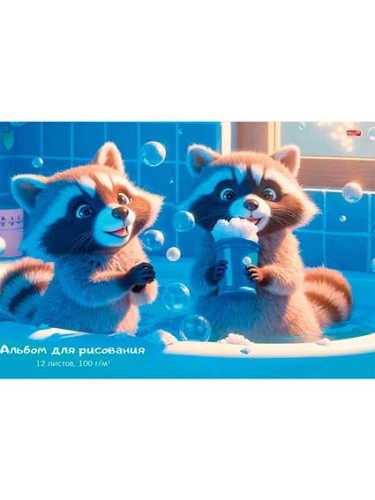 Альбом для рис.12л. Проф-Пресс "Озорные еноты" 12-7246 бл.-офсет,на скобе