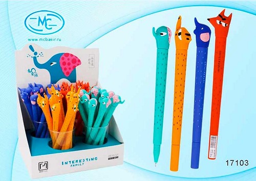 Ручка гелевая МС Basir "Животные" 17103 синяя,игол.након.,цв.корп.soft,прорез.на