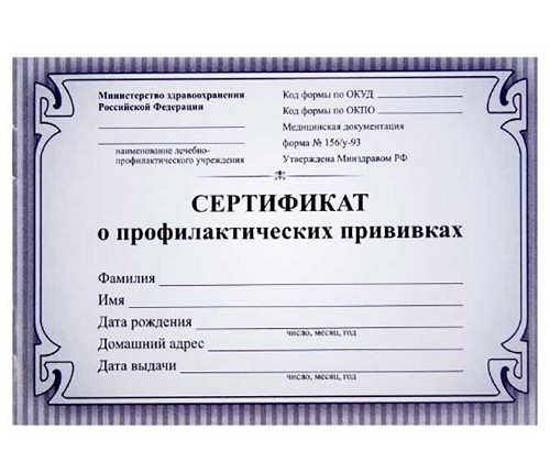 Сертификат о профилактических прививках 12 стр. КЖ-401