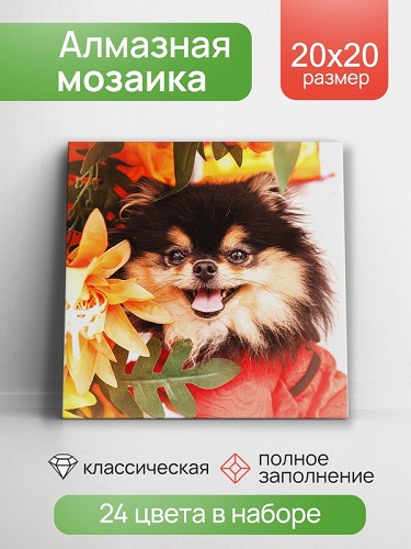 Алмаз.моз.класс.(20х20см) с подр,полн.зап. (24цв) Шпиц в листве НД-0942
