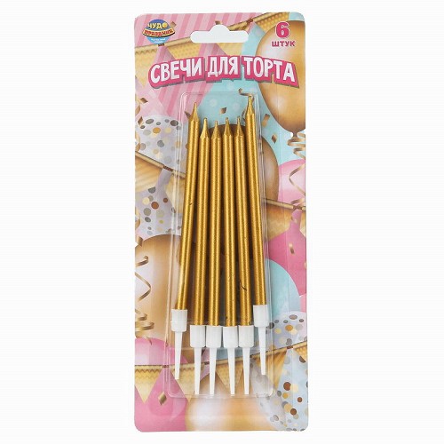 Свечи д/торта Воздушные шары с держателем золотые, высокие (6шт) блистер СС6-113