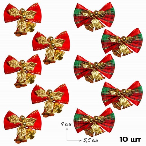 Новогоднее украшение (4*4см,10шт) Бантик с колокольчиком Р9224-104