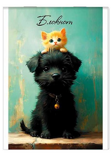 Блокнот А6 32л. АППЛИКА "Щенок и котёнок" С0100-304 мел.обл.,клетка