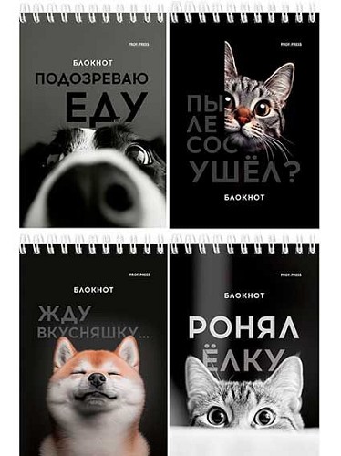 Блокнот А6 40л. Проф-Пресс спираль "Смешные питомцы" Б40-7018 цв.мел.обл.,офс.,