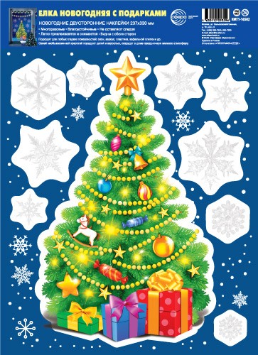 Наклейки А4+ на окна Елка новогодняя с подарками НМТ1-16502