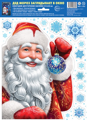 Наклейки А4+ на окна Дед Мороз заглядывает в окно (видны с обеих сторон) НМТ1-17