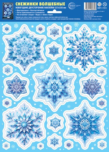 Наклейки А4+ на окна Снежинки волшебные НМТ1-17511