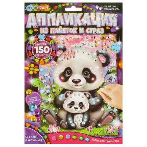 Аппликация из пайеток и страз MultiArt (17*23см) Панды GEMSEQ-111514