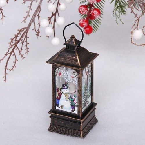Сувенир с подсветкой Фонарь с сказочным снеговиком (5.5*5.5*12.5см) (3хAG13) 196