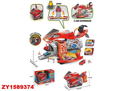 Гараж-автовоз 802G с трассой до 120см и катапультой, 6 авто в/к