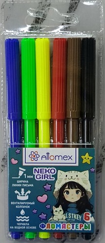 Фломастеры 6цв. ATTOMEX "NekoGirl" 5080537 вент.колп.,пластик.блист.