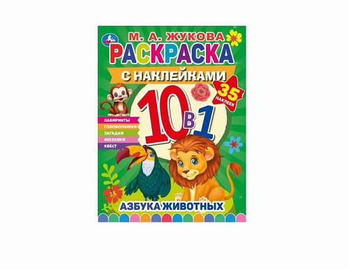 Раскраска А4 10-в-1 35 наклеек Жукова М.А. Азбука животных 978-5-506-07590-5