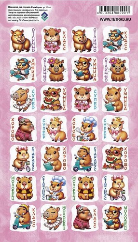 Наклейки д/оценок ПС 11*17 Капибарка НакО68
