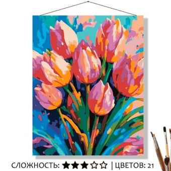 Картина по ном. на холсте (50х40см) с подрам. Розовые тюльпаны КН50401254