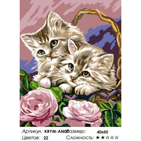 Картина по номерам на холсте (50х40см) Котята в корзинке КН5040515