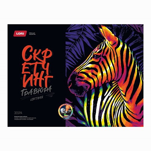 Скретчинг (30*40см) Неоновые животные Зебра Гр-776 (Колорит)