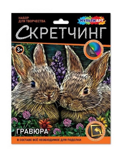 Гравюра MultiArt (18х24см) Кролики SCRETCH-111555