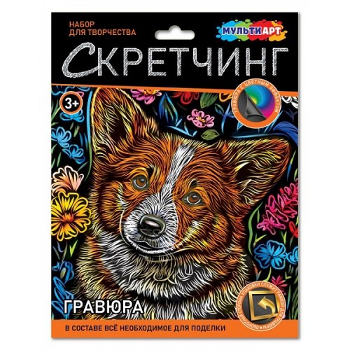 Гравюра MultiArt (18х24см) Корги SCRETCH-111537