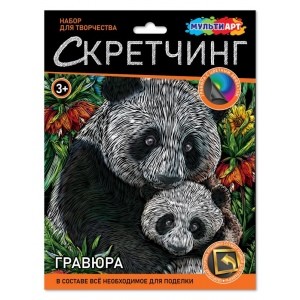 Гравюра MultiArt (18х24см) Панды SCRETCH-111541