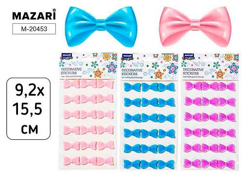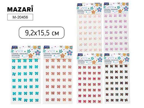 Наклейки-стразы MAZARI "Бантики" M-20456 пластик 9,2*15,5см,асс.,ОПП-уп. ев./под