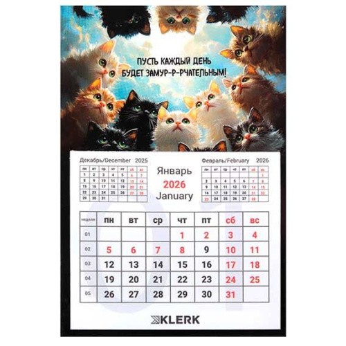Календарь магнитный 2026г. 100*150 КЛЕРК "Котята в небе" 260004