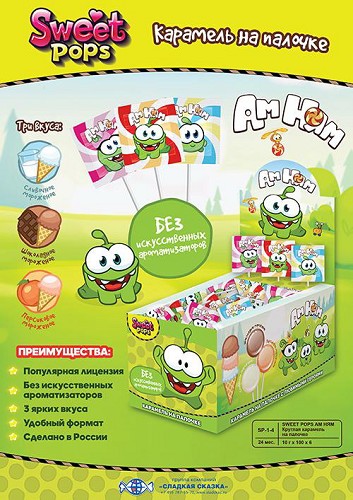 Карамель на пал.Sweet bar (20гр) со вкусами пина колады,мохито-клубники, УТ49070
