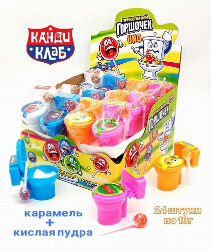 Карамель Прикольный горшочек UNO с кислой пудрой (10гр) КАН857