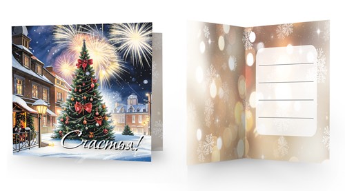 Мини-открытка двойная Счастья! (новогодняя) М-16633