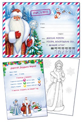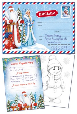 Письмо Дедушке Морозу в почтовом конверте (конверт,письмо с текстом и раскраской