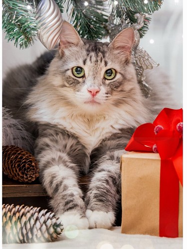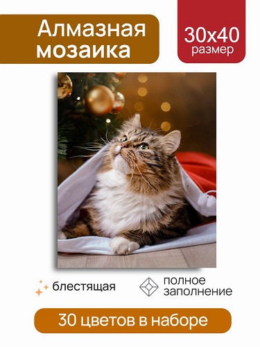 Алмазная мозайка класс. Кот под ёлкой (17х22см) c подрамником, с полн.заполн. (2