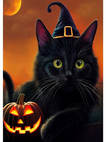 Алмазная мозаика класс. Кошечка-ведьмочка (17х22см) с подрамником, с полным запо