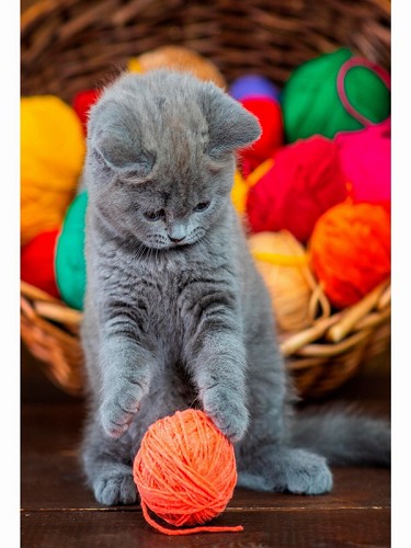 Алмазная мозаика класс. Котёнок играет с клубком (17х22см) с подрамником,с полны