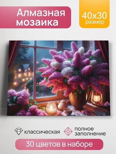 Алмазная мозаика класс. Ночной букет сирени (40х50см) с подрамником, с полным за