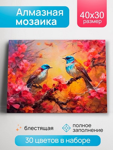 Алмазная мозаика класс. Птицы на ветке (30х40см) с подрамником, с полным заполне