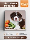Алмаз.моз.блест.(20х20см) с подр,полн.зап. (24цв) Щенок с тюльпанами НД-0923