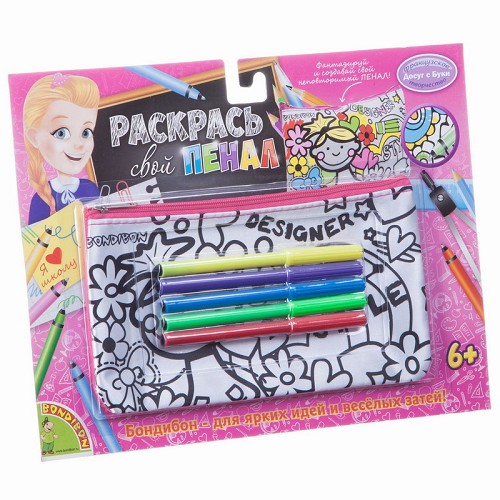 Bondibon Пенал д/раскрашивания розовый (21х12см) MTBF109 ВВ1797