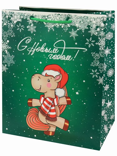Пакет подар. мат.лам. (32,4х44,5х10,2см(XL) Лошадка с конфетой ППК-2429