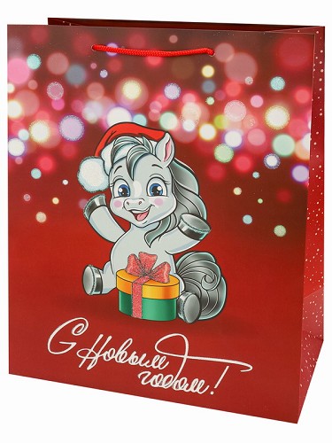 Пакет подар. мат.лам. (32,4х44,5х10,2см(XL) Лошадка с конфетой ППК-2429