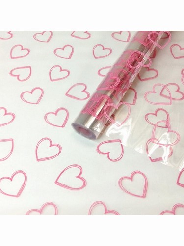 Пленка прозрачная Сердечки контурные розовые (0,7*7,5м 40мкм 0,200кг) 991219