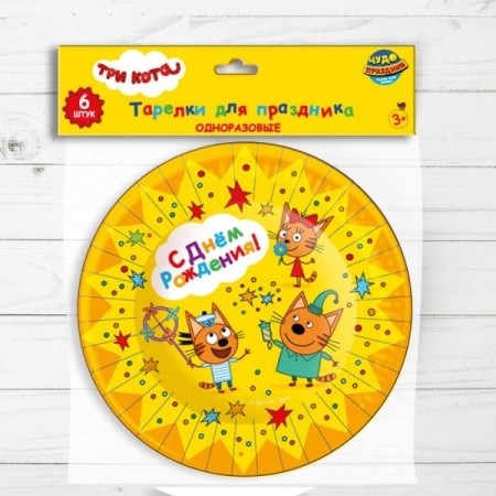 Тарелки бумаж. ТРИ КОТА (6шт, 23см) пакет+хедер Чудо праздник PP-84272-3C
